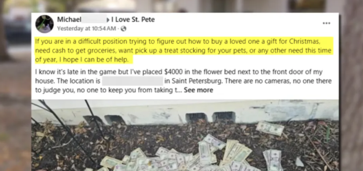 圣诞节是分享与爱的季节,而今年的圣诞夜,佛州圣彼得堡(St. Petersburg)的一位男子用自己的行动让整个社区感受到了一份特别的温暖。这位不愿透露姓名的男子,经历了一场个人的悲痛后,选择用善良...