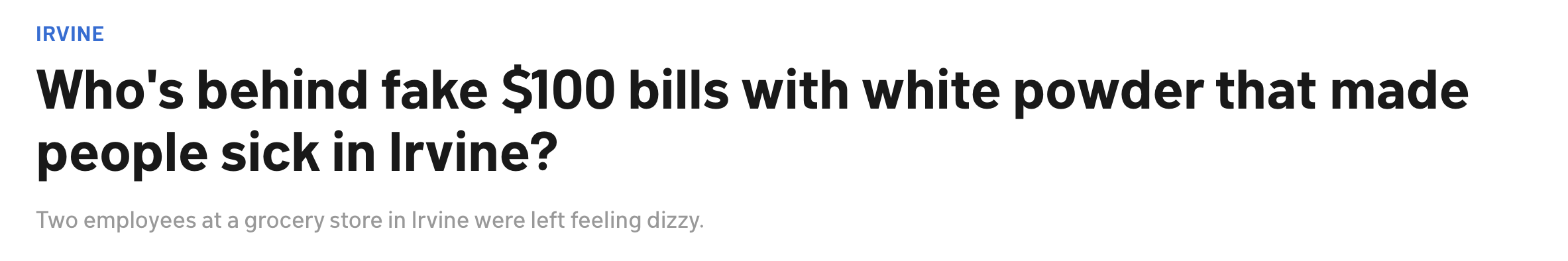 一张看似普通的100美元钞票,却让超市员工当场头晕送医。近日,在南加州华人聚居城市Irvine发生一起令人不安的事件:一家超市内接连发现夹带白色粉末的假钞,两名员工在接触后身体不适,引发警方与消...