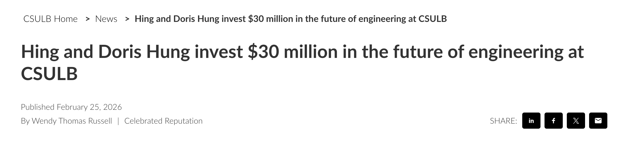 当California State University, Long Beach(简称CSULB)宣布工程学院可能以一位华人企业家家族命名时,外界看到的是一笔创纪录的3000万美元捐赠;而在这笔巨款背后,是一段跨越半个多世纪的命运沉浮。