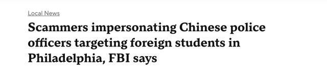 2026年1月16日(周五),FBI费城分局在新闻稿中再次就这一骗局发出公开警告,提醒在费城地区高校就读的中国留学生提高警惕。官员强调,中国警方或任何外国执法机构**不会**通过电话、视频要求个人转账、支付加密货币,也不会要求当事人接受所谓的“全天候监控”。