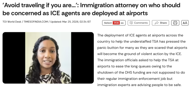 在法律层面,移民律师也发出明确警告。律师Saimithra Reddy指出,ICE拥有较大的执法裁量权,可以在机场盘问任何人的身份,包括美国公民和绿卡持有者。一旦拒绝配合,个人可能被带走进行进一步审查,甚至面临拘留。