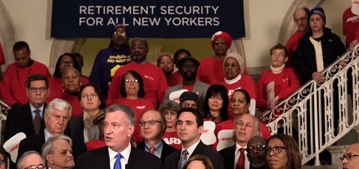 0 当地 2019年9月24日 由 春林 · Published 2019年9月24日 · Last modified 2019年9月25日 纽约推全民退休保障计划 市长白思豪支持 据侨报纽约报道,为了使纽约人退休后有足够的收入安度晚年,纽约市议员提出“全民退休保障计划” (Retirement Security for All),如果法案通过,目前没有退休储蓄的私营企业雇员,可以自愿加入政府设...