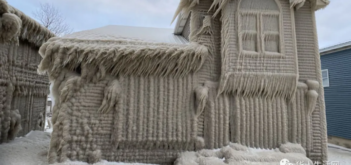 伊利湖(Lake Erie)是北美洲五大湖之一,当地最近遭严寒天气侵袭,导致伊利湖沿岸的房屋都结冰,形成一种奇特的异世界景象。