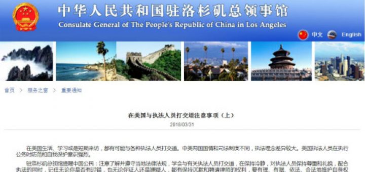 中国总领馆发公告:被警察拦下 入美受阻要注意
