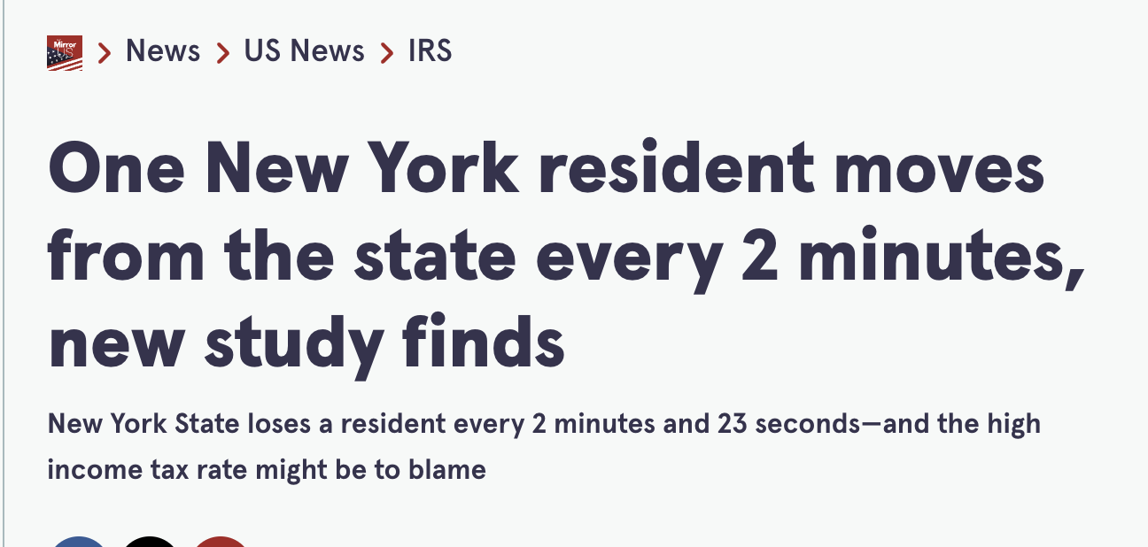 美国国税局的新数据显示,在前州长Andrew Cuomo提高税率后,纽约州就有2000多名百万富翁在疫情大流行的第一年纷纷出逃。