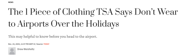 随着圣诞、新年假期临近,美国各大机场再度迎来出行高峰。节假日原本就意味着排队更长、节奏更快,如果再因为穿着问题触发安检警报,行程很可能被进一步拖慢。为此,美国运输安全管理局(TSA)日前专门向旅客发出提醒:假日期间,尽量别穿那些“闪闪发光”的衣服去机场。