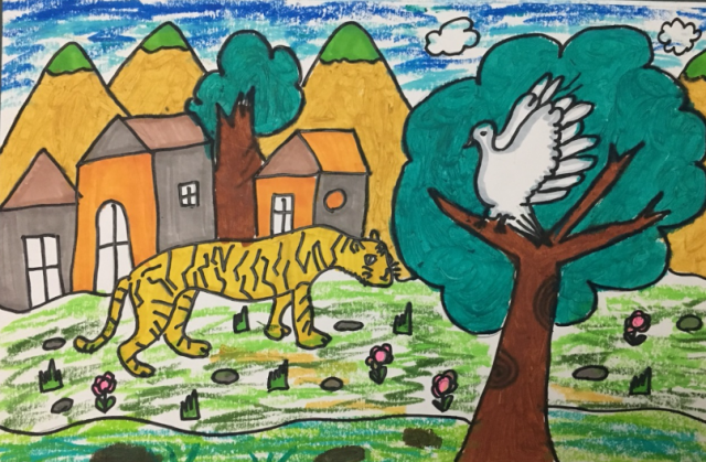蒋懿楚,女,时年11岁,就读于浙江慈溪市观海卫镇中心小学四年(3)班。学画画六年,获得了很多荣誉:2015年PHE国际青少年书画大会三等奖;2016年PHE国际青少年书画大会三等奖;2017年PHE国际青少年书画大会二等奖;2017年慈溪市小学生食品安全绘画大赛中三等奖;2018年慈溪市中小学生艺术节绘画大赛三等奖。
