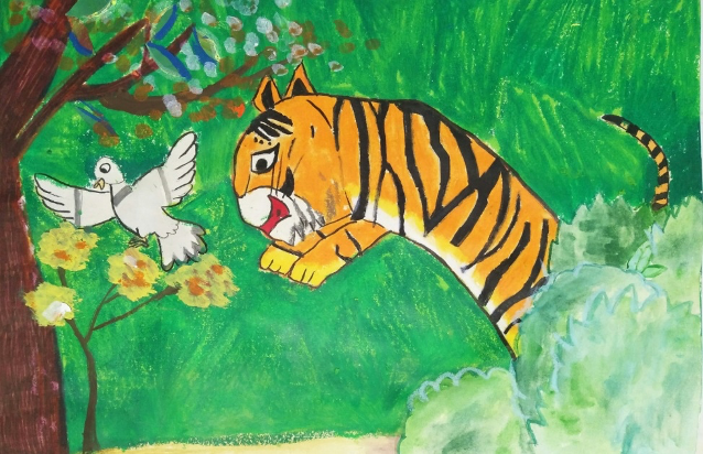 Smart pigeon flew back to the pigeon nest and told his relatives and friends about all the events that had just happened. All the other pigeons were outraged at smart pigeon’s actions; "How could you help a tiger?! Don’t hold a candle to the devil!" In his defense, Smart pigeon reasoned, "I think all lives in the world, due to natural selection, have their own purposes. Tiger is dying of hunger, but he shouldn't die. Tiger is needed in the forest." "Why?" The rest of the pigeons all asked in confusion.