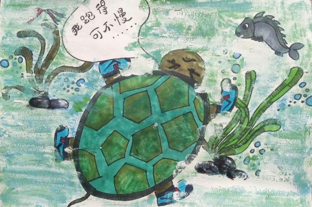 乌龟傲慢地反驳:“我跑得可不慢。你不知道吗?上次与兔子赛跑,把兔子比下去了,得了冠军。从那以后,我天天练跑步,准备卫冕冠军。”鲈鱼听后,故意大吃一惊:“你吹牛吧!兔子跑得那么快,老鹰都不一定抓住他,你怎么能赢兔子?”