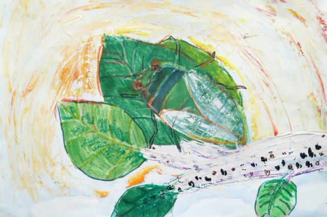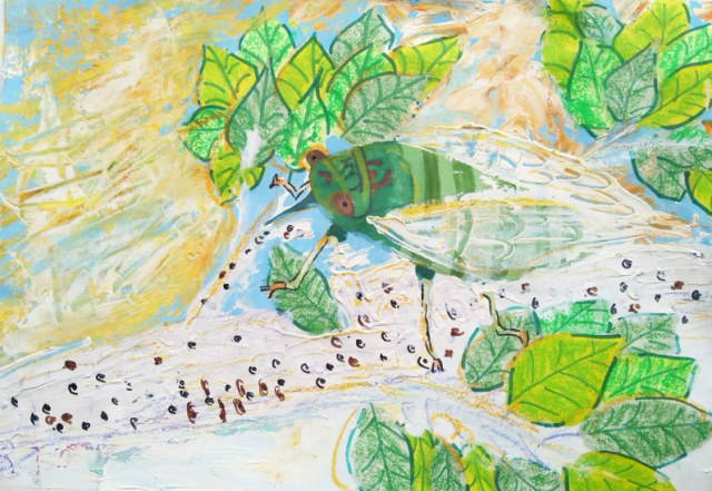 At dawn, the sun came out. The sky was cloudless; the burning sun was shining on the lush green of the canopy. As the temperature rose sharply, the male cicada’s body matured and his wings hardened.