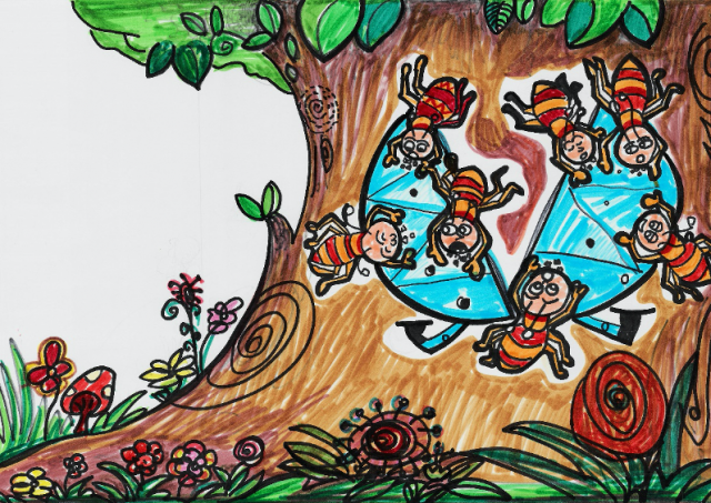 Suddenly, the cicada saw a large group of ants. The ants came out of a cave near the roots of the tree, and formed a neat long line. This time, it was the cicada’s turn to watch the ants. He stopped singing and looked at the ant army, curious what they intended to do.