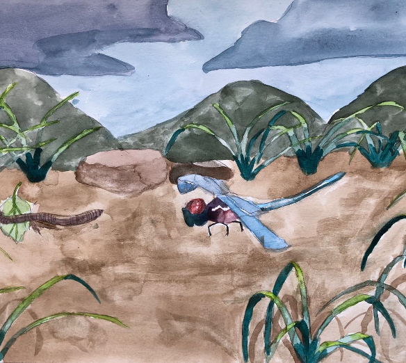 The dragonfly knew the ants were small, but very aggressive. She had seen the ant clusters attacking injured insects in order to eat them. The dragonfly had always kept a safe distance from the ants after seeing this. After hearing the earthworm’s plan to ask the ants for help, the dragonfly feared that it might be too dangerous. She tried to stop the earthworm from leaving, but he had already dug into the earth and was on his way to the ants.